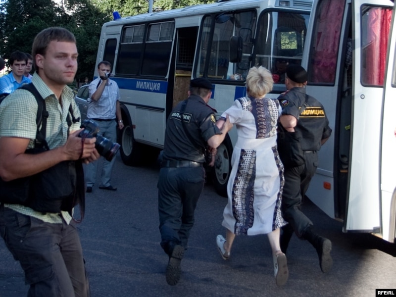 В течение следующего часа милиция через мегафон просила всех разойтись и не мешать проходу граждан. Тех, кто пытался объяснить свое право находиться где ему хочется, провожали в автобус.