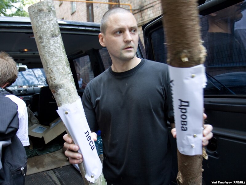 Лидер "Левого Фронта" Сергей Удальцов разгружает дрова из Химкинского леса на задворках здания Правительства РФ