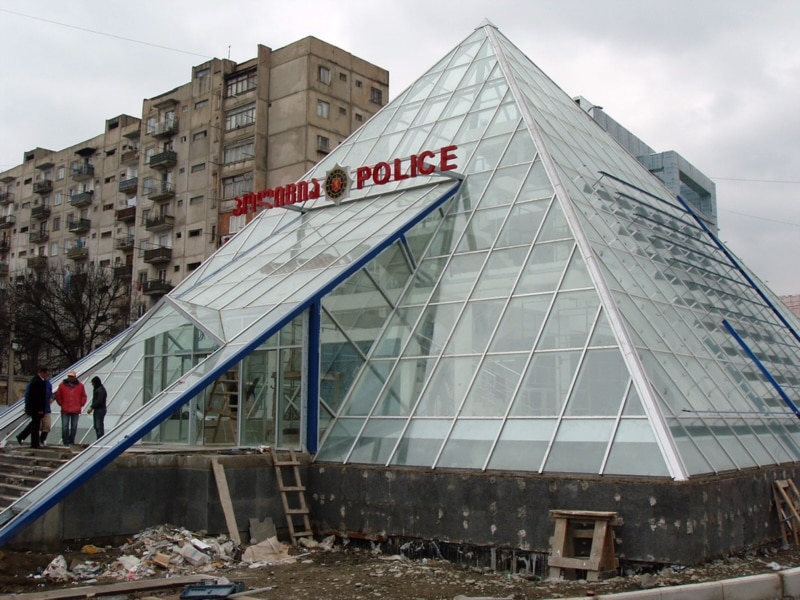 Неважно, как выглядит полицейский участок, заявляет Вано Мерабишвили. Он может быть похож на аквариум, кубик Рубика, такую вот пирамиду или шайбу. Главное, что происходит внутри. Переоборудование участков – это тоже часть реформы МВД, которую начинали с полной ревизии и омоложения личного состава, уточняет главный грузинской полицейский: