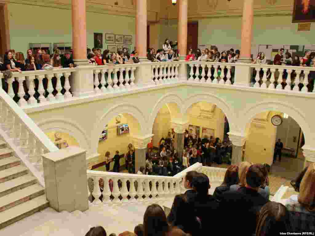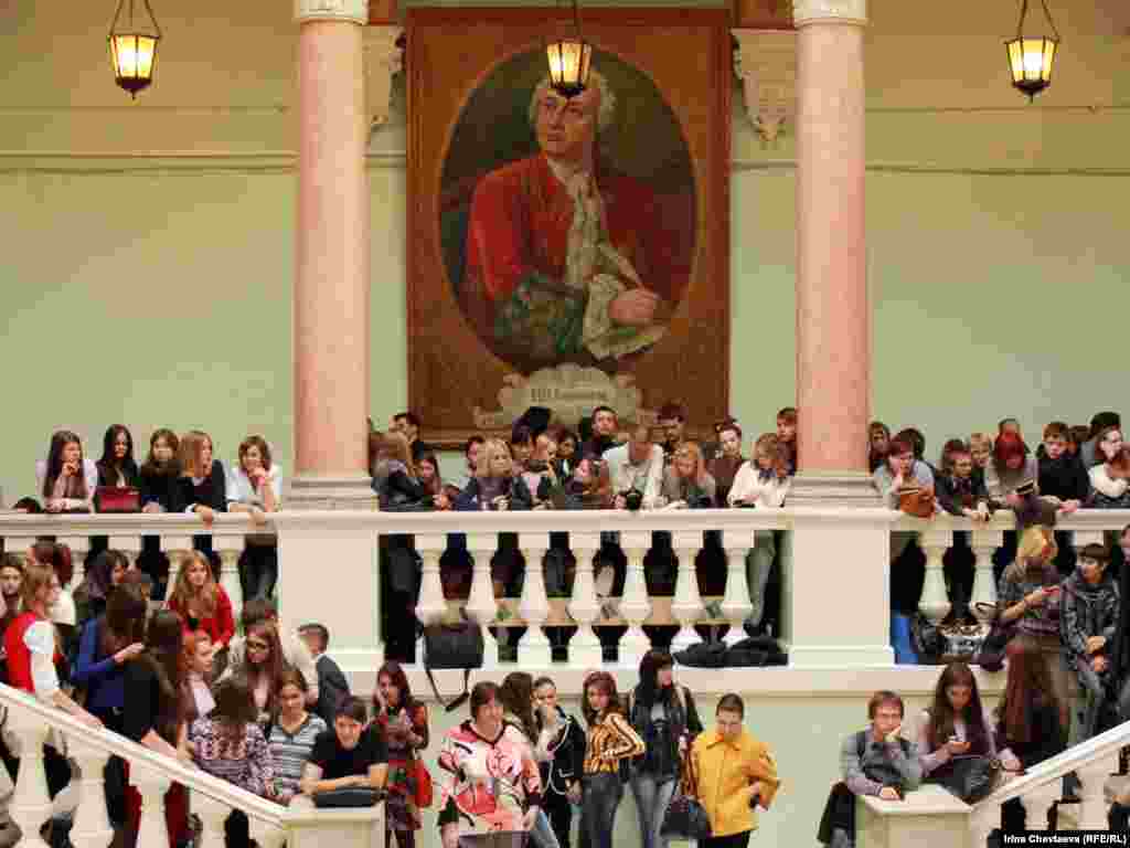 Russia--Visit of Russian President Dmitry Medvedev at the The Faculty of Journalism at Lomonosov Moscow State University, MSU, 20Oct2011
