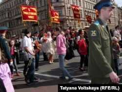 Среди массы праздничных мероприятий, посвященных Дню Победы, проходящих 9 мая в Петербурге, одно можно назвать самым любимым и молодежью, и детьми, и старшим поколением. Это торжественный проход по всему Невскому проспекту ветеранов войны и жителей блокадного Ленинграда. С каждым годом их все меньше, с каждым годом им все труднее пройти такое огромное расстояние, но они снова идут по Невскому, и дети выбегают к ним навстречу с цветами, и люди теснятся на тротуарах, ждут, иногда по целому часу, когда появится колонна. Ни один праздник никогда не собирает столько народа – только в этот день по Невскому не пройти, он от начала до конца заполнен людьми.