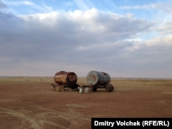 На рассвете разрушающая позвоночник дорога по плато Усть-Юрт и дну Аральского моря. Его теперь засевают с самолетов кустарником, чтобы не было пыльных бурь, но песок все равно летит и душит муйнакцев.