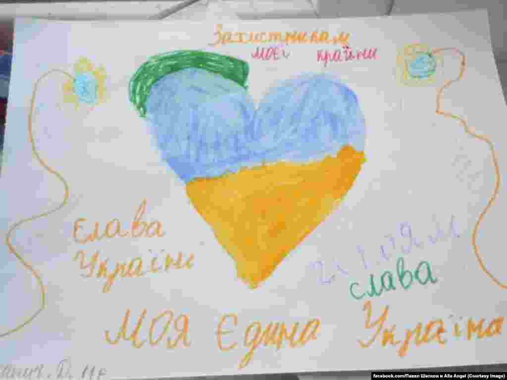Российский комитет солидарности с Майданом собирает на своей странице в Facebook рисунки детей из разных стран мира против войны на Украине. Рисунки будут отправлены украинским солдатам на передовую, а некоторые из них заменят плакаты на антивоенных акциях протеста.