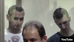 Олег Сенцов и Александр Кольченко после оглашения приговора – скриншот трансляции сайта "Открытая Россия":