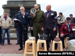 – Подумаешь, народу мало! Значит, тем, кто не пришел, не очень нужно было, – говорит одна из организаторов митинга. Вместе с боевой подругой она обходит сгрудившихся у памятника адмиралу Нахимову людей и повязывает им на рукава повязки бело-сине-красного цвета.