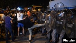 Накануне в ереванском районе Эребуни, где находится захваченное активистами здание, произошли столкновения демонстрантов с полицией. Участники протестов забросали кордон полицейских камнями. Чтобы разогнать толпу, полиция применила оглушающие бомбы, слезоточивый газ и дымовые шашки. К полуночи силы правопорядка взяли ситуацию под контроль.