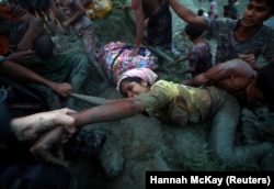 Беженцы народности рохинджа, против которой в Мьянме была развязана кампания преследований, преодолевают реку на границе с Бангладеш. 1 ноября.