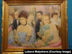 Ещё один коллективный портрет – “Ложа” – наполнен иллюзорной легкостью, но также рассказывает о культурном противостоянии франкизму. В 40-е годы Ольга и ее друзья часто ходили на представления театра Лисеу, остававшегося своеобразным оплот свободы слова. На переднем плане картины “Ложа” – Мария Терезия Фабрегаc. Рядом с ней – архитекторы, художники, писатели. В 2013-м обладатель картина “Ложа”, местный фармацевт, передал ее в дар Círculo del Liceo. После повторного “открытия” картины интерес каталонцев к творчеству Сахаровой неимоверно возрос: что она еще знала о нас, что она еще увидела?