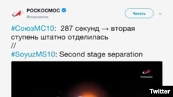Роскосмос опубликовал видеозапись с успешным запуском ракеты "Союз" вскоре после того, как на космодроме Байконур произошла авария. Ролик был доступен на странице корпорации в Twitter, однако вскоре пост удалили из соцсети. В одном из сообщений Роскосмоса говорилось о том, что на 287-й секунде после запуска вторая ступень ракеты-носителя штатно отделилась. В другом посте корпорации было сказано, что на 528-й секунде корабль якобы успешно выведен на орбиту.