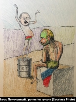 "Эту картинку я нарисовал к последнему приезду Александра Лукашенко в Москву, когда стало ясно, что у него начались проблемы в связи с решением российского правительства повысить цены на нефть и газ для Белоруссии, и Лукашенко приехал к Путину договариваться".