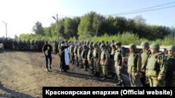 В воинской части под Ачинском Красноярского края, где в августе дважды взрывались склады с боеприпасами, местный священник провёл молебен, окропил святой водой оставшиеся склады, личный состав и технику, сообщается на сайте Красноярской епархии.