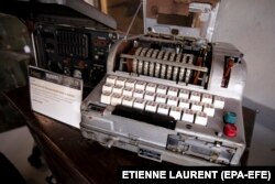 На следующем фото – "Фиалка", один из самых дорогих лотов на аукционе. В Советском Союзе любили давать имена цветов и растений не только новым видам смертоносного оружия, но и шпионской технике. "Фиалка" – это шифровальная машина, разработанная в СССР вскоре после Второй мировой войны и использовавшаяся в странах Варшавского договора до 90-х годов прошлого века. Несмотря на то что "Фиалку" часто называют советским аналогом немецкой "Энигмы", она обладает меньшей криптостойкостью.