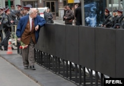 Стало традицией и то, что собираются на площади Тверской заставы ветераны вместе со сторонниками КПРФ. Сегодня начало торжественного шествия было запланировано на 11.00, и к этому времени в начале Тверской улицы уже находились более трех тысяч человек. Большинство пришло на марш с красными флагами.