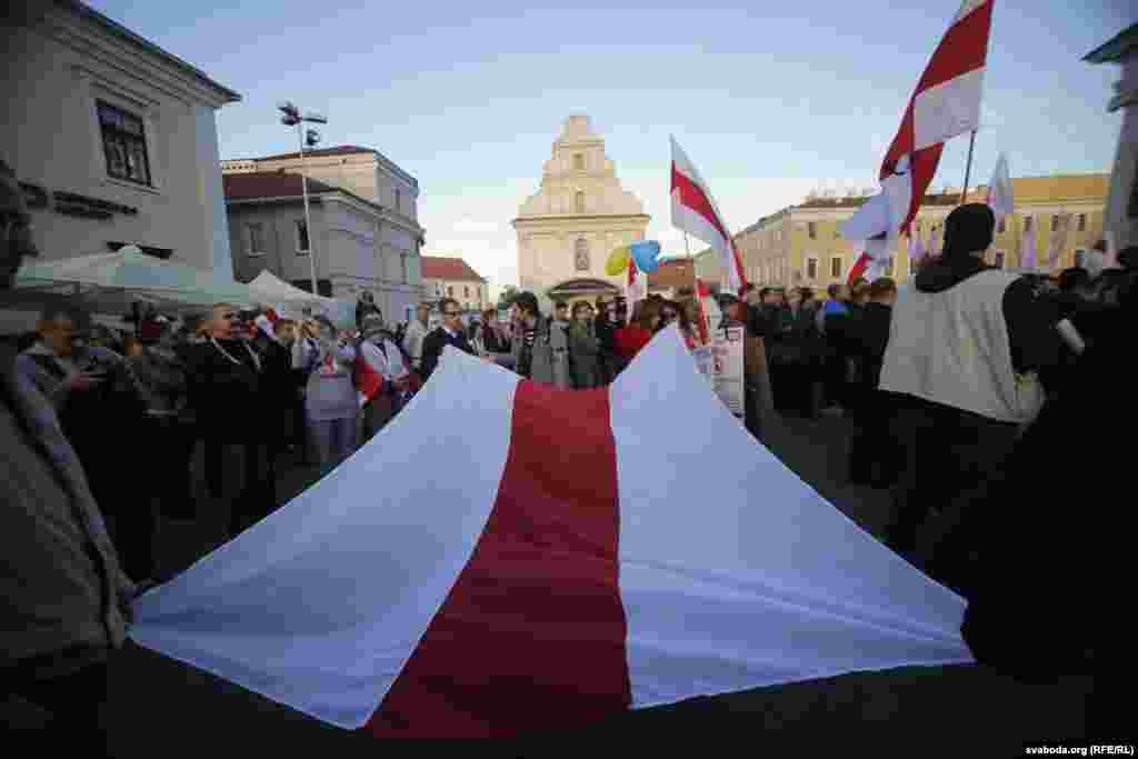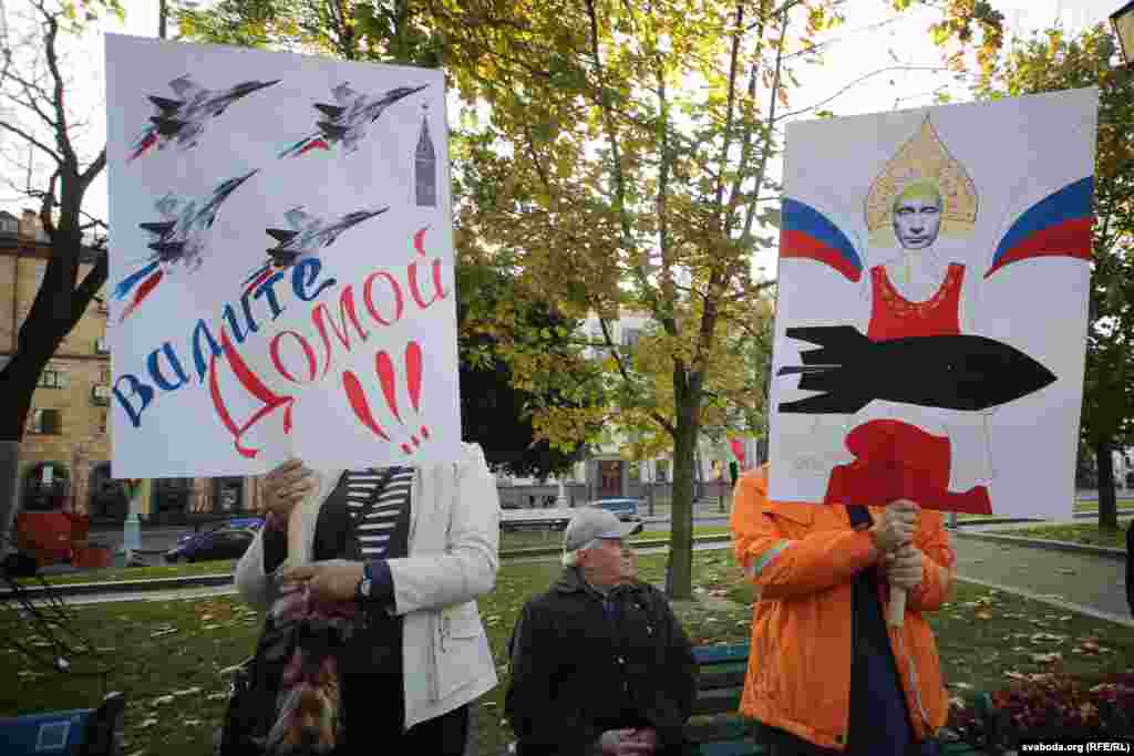 В Минске 4 октября состоялась массовая акция против размещения на территории Белоруссии военной базы российских вооруженных сил. Несколько сот человек с плакатами, бело-красно-белыми флагами оппозиции и знаменами Евросоюза вышли на улицы Минска, скандируя "Нам нужно мирное небо!".