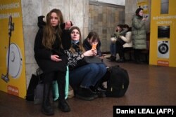 Киев, люди прячутся от возможных обстрелов в метро