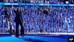 Она напомнила американцам о своей работе прокурором Сан-Франциско и Калифорнии, когда ей довелось защищать интересы студентов, рабочих, пенсионеров от давления со стороны больших корпораций. Харрис пообещала создать "экономику возможностей" для всех американцев.