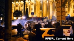 Власти попытались разогнать манифестации, используя водометы и слезоточивый газ, однако протесты лишь увеличивались, начались столкновения с полицией, на улицах Тбилиси появились баррикады, демонстранты бросали в полицейских камни и коктейли Молотова, пытались сломать ограждения парламента.