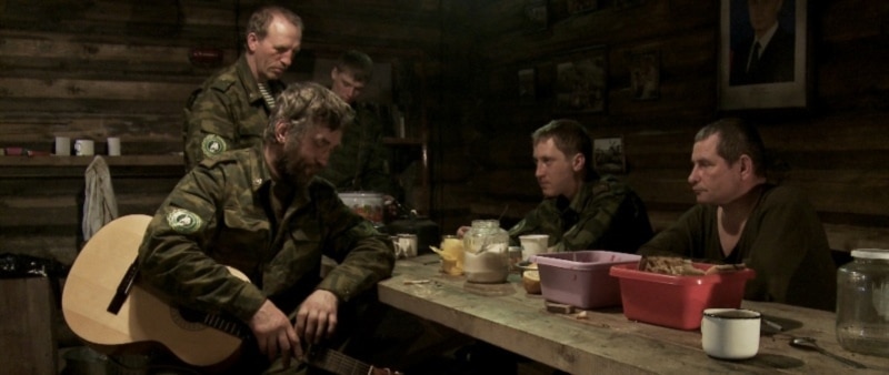Дмитрий Волчек: Да, такой ритуальный мир – поклонение пограничному столбу с советским гербом, или празднование 9 мая с рукописным плакатом на стене и торжественным построением. Может быть, в какой-то большой военной части это и казалось бы нормальным, но когда все эти ритуалы исполняют шесть человек в маленьком домике среди льдов и снега…